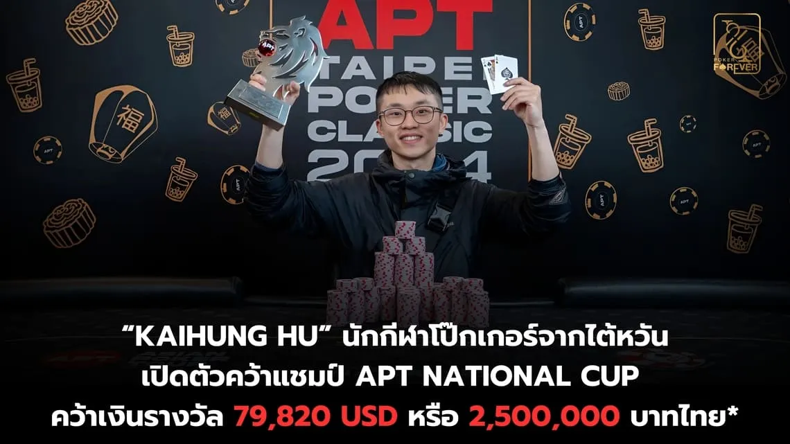 สุดท้ายนี้ทางทีมงาน Poker Forever ขอแสดงความยินดีกับนักกีฬาโป๊กเกอร์ Kaihung Hu ที่คว้าแชมป์หนึ่งในรายการใหญ่อย่าง APT National Cup ไปครองได้สำเร็จ